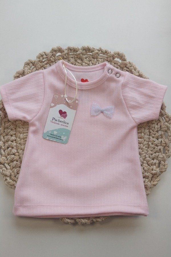 Remera confeccionada en algodón 100% con detalle de moño de tul y broches en hombro